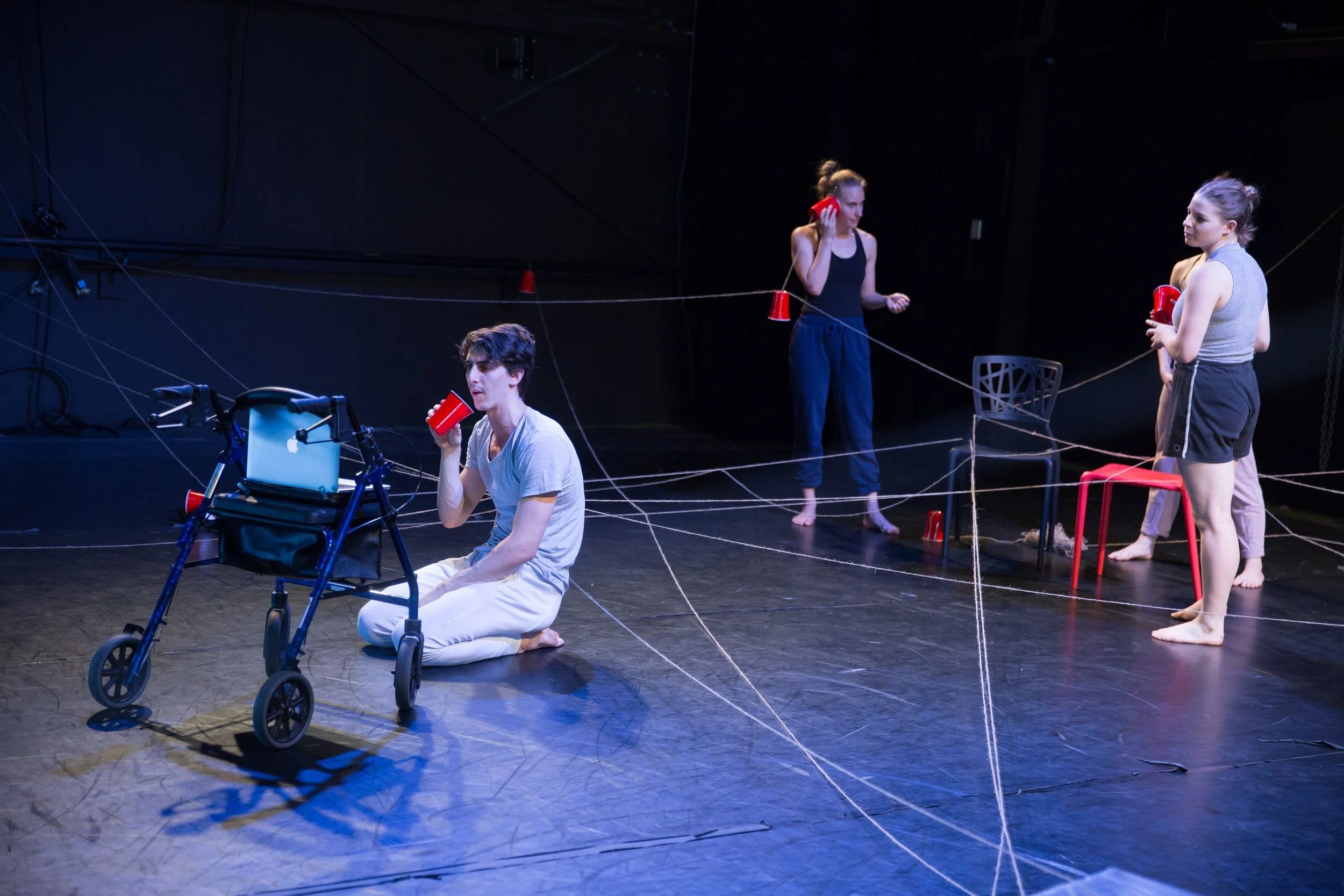 Farthest Distance began as an experimental collaboration between the Melbourne based Sneddon and Brisbane based Ball. What started as “how do we make a performance over long distance” evolved into an exploration of the distance and its affects on interpersonal relationships. Physical, emotional, rational, abstract. In an experimental, interactive performance, with performers and audience present in both Brisbane and Melbourne, we attempt to measure every possible distance between us, the audience, and the spaces between.
